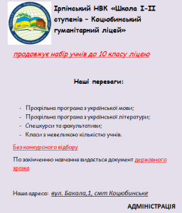 НВК “школа І-ІІ ступенів – Коцюбинський гуманітарний ліцей”